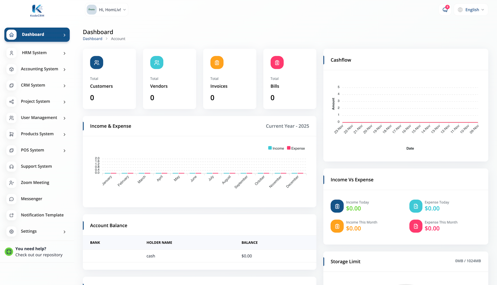 KodeCRM SaaS All In One Business ERP With Project, Account, HRM, CRM